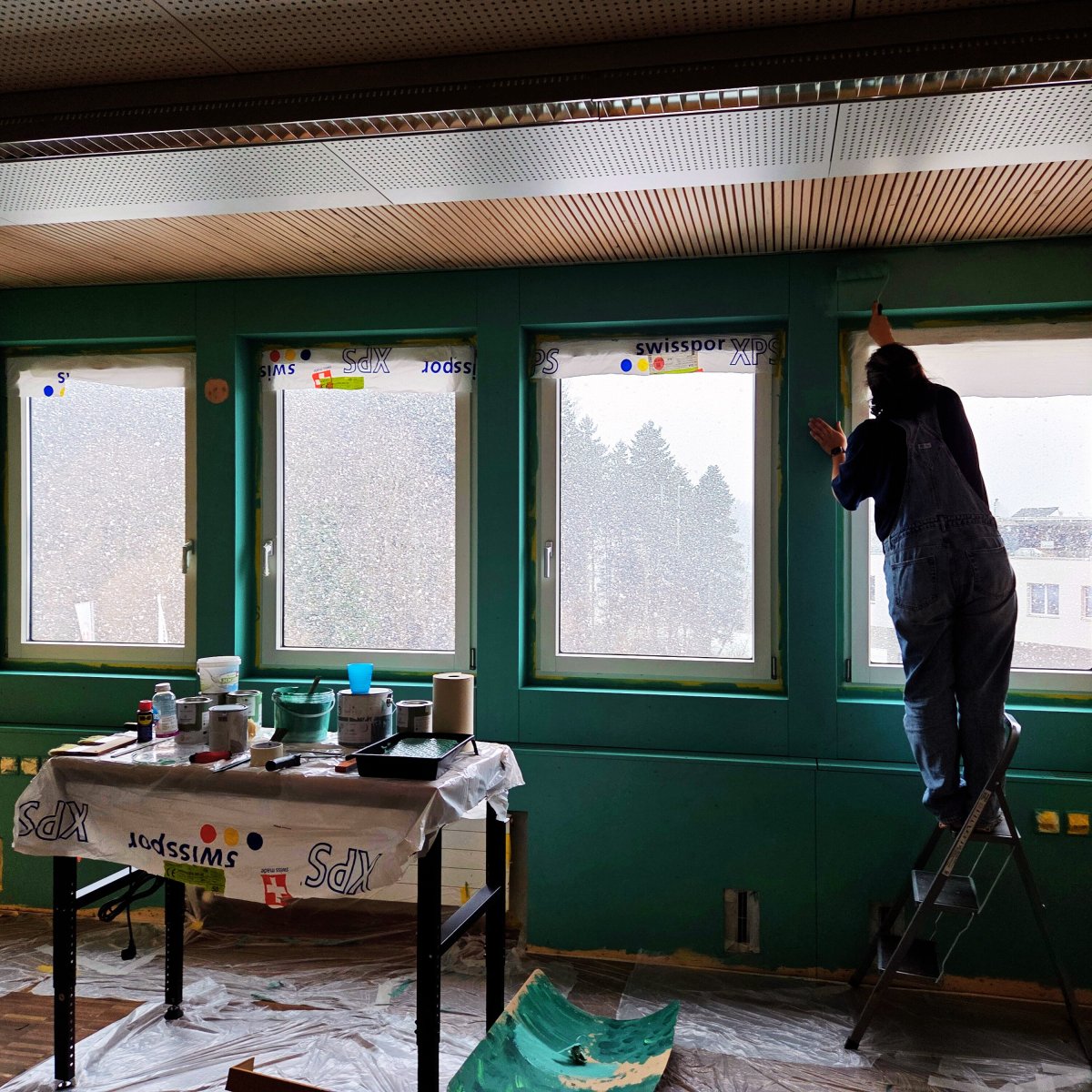 Mit jedem Pinselstrich wächst das magische Waldgefühl, das später Kinder und Besucher mitten in die Welt der Woodbuds zieht. 🌳🎨