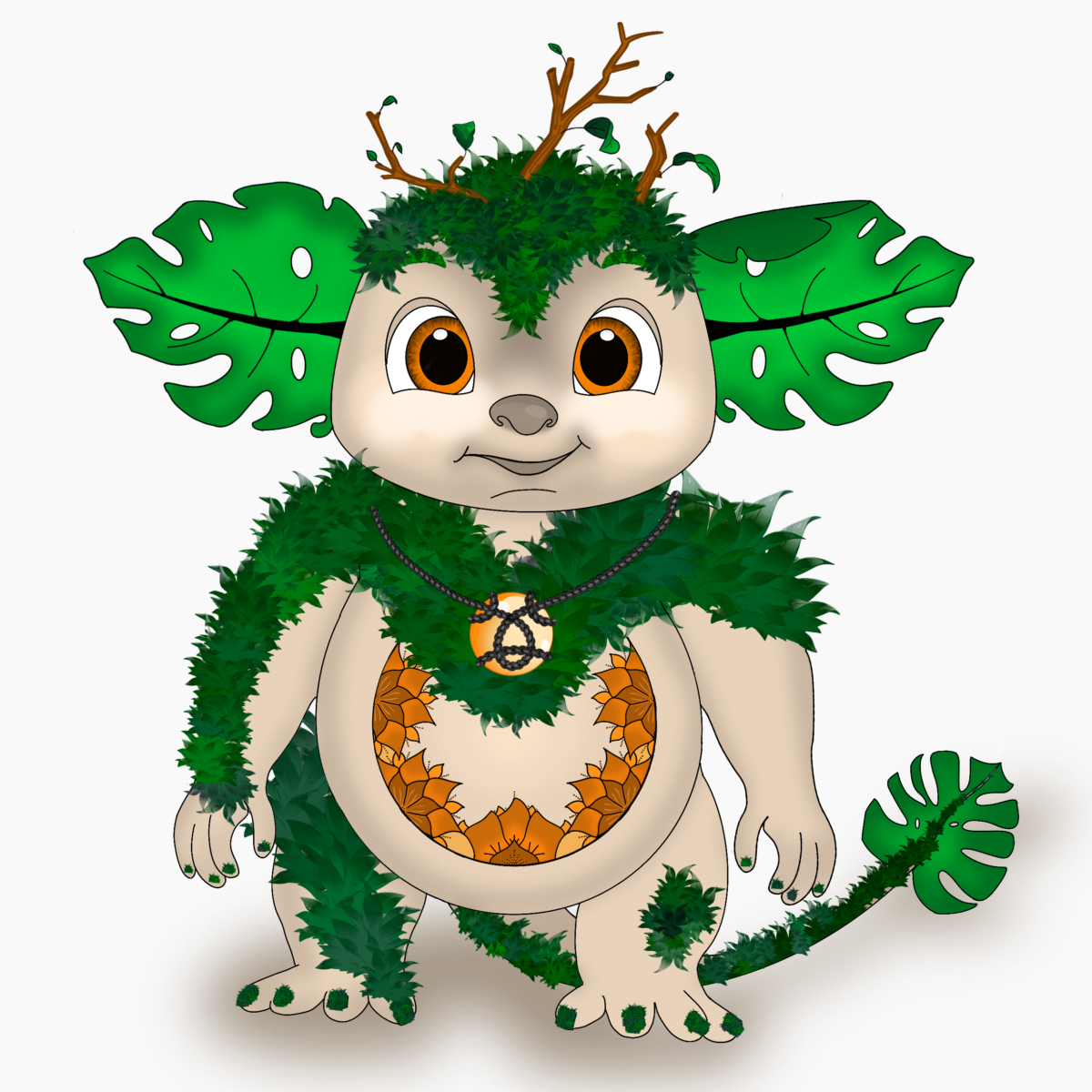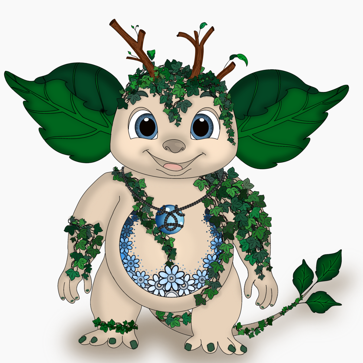 Dort leben kleine, magische Wesen, die Woodbuds. Sie sind nur etwa eine Hand hoch, rundlich und freundlich, mit blattförmigen Ohren, kleinen Ästen auf dem Kopf und einem blattbewachsenem Schwanz. Auf ihrer Haut tragen sie zarte Muster wie Blumenmandalas und um ihren Hals hängt stets eine kleine Murmel. In ihr leuchtet ihre Energie – ein sanftes Licht, das verrät, wie es dem Woodbud gerade geht. Kein Woodbud gleicht dem anderen. Sie unterscheiden sich in Grösse, Ohrform, Astzweigen und den Farben ihrer grossen Augen.